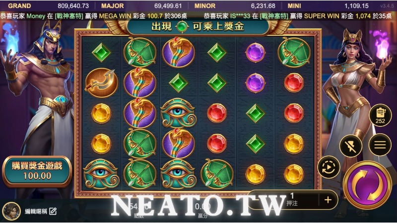 戰神賽特是由ATG娛樂推出的一款線上老虎機遊戲,它融合了古埃及神話的元素,帶你進入一場奇幻的古埃及之旅。這款遊戲以其極高的回報率而聞名,同時也引入了直接購買獎金遊戲的功能,讓你有更多機會贏得大獎。最引人矚目的特點之一是,它提供高達51000倍的獎金,這使得每一輪都有可能成為你贏得巨額獎金的時刻。