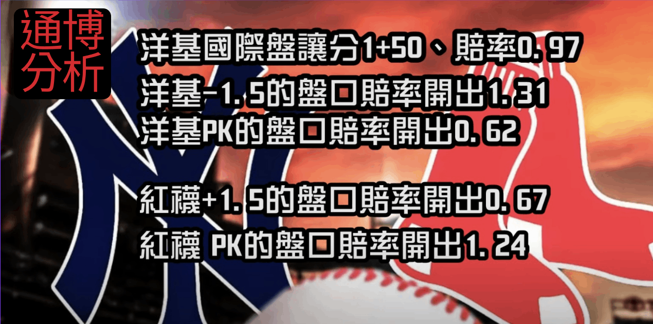 富遊分析假設有一場洋基對紅襪的比賽,開出以下盤口: