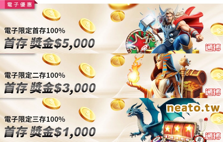 | 優惠名稱 | 電子限定首存100% | 電子限定二存100% | 電子限定三存100% |