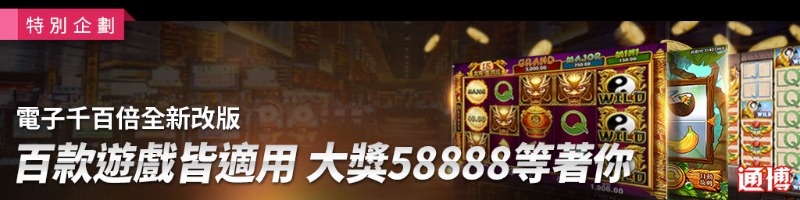活動內容:電子遊戲千百倍活動頁面全新改版,適用機台新增百餘款,天天都有機會獲得大獎58,888。